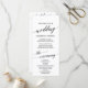 Este elegante programa de casamento de caligrafia branca e negra é perfeito para um casamento simples. A design neutra apresenta uma carta minimalista decorada com tipografia romântica e caprichosa. Inclua o nome da noiva e do noivo, a data e o local do casamento, a mensagem do obrigado, a ordem do serviço, a festa noiva e um memorial "em memória amorosa" opcional.