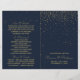 Estes programas dobrados são perfeitos para qualquer casal planejando uma celebração romântica de casamento. O design apresenta um fundo azul de marinho na moda com estrelas elegantes em queda de ouro e com uma redação editável correspondente. O design simples pode ser personalizado para se adequar ao seu evento especial e será a ordem de serviço perfeita para qualquer partido moderno, incluindo chás de panela, noivados, chás de casamento, festas de aniversário e muito, muito mais.