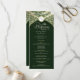 Este programa de casamento apresenta um rico fundo verde adornado com florescimento de damascos de ouro, criando um estilo luxuoso e eterno. Uma crista decorativa fica no topo, enquanto o layout central destaca os nomes do casal e todos os detalhes do serviço de casamento em formato refinado e organizado. A elegante combinação de verde e ouro traz um olhar sofisticado e real, fazer este cartão de programa uma escolha perfeita para casamentos formais, tradicionais e noturnos.