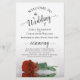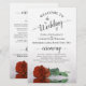 Estes programas de casamento são elegantes e saborosos, enquanto ainda são favoráveis ao orçamento. A design apresenta um rosa cor de laranja, solteiro, de longo curso, sobre a ferrugem, que se encontra do lado, refletindo numa piscina de água com ondas e ondulações. A tipografia apresenta uma caligrafia antiga em escrituras negras, e há espaço para detalhes na cerimônia, na festa de noiva, e um obrigado curto para você.
