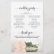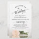 Estes programas de casamento são elegantes e saborosos, enquanto ainda são favoráveis ao orçamento. O design apresenta um rosa cor de pêssego, palha ou pincelada, de solteiro longo, estendido sobre o lado, refletindo em uma piscina de água com ondas e ondulações. A tipografia apresenta uma caligrafia antiga em escrituras negras, e há espaço para detalhes na cerimônia, na festa de noiva, e um obrigado curto para você.