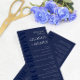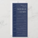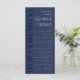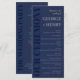 Programa legante de casamento de tipografia em azul-marinho mudo com letras grandes na lateral do programa plano. Adicione sua cerimônia e festa de casamento em cinzas prateadas. Programa de casamento monograma em azul escuro. Programa de casamento tipográfico em azul marinho e cinza.