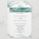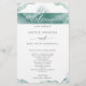 Bem-vindos e encantem seus hóspedes com este elegante e romântico programa de Casamento, distinto por manchas de aquarela que incluem seus detalhes em tons azuis/verdes. Banda de aquarela estonteante com fina floreal desenhada à mão no topo, mostrando frase "bem-vinda" na frente e "Festa de casamento" no verso. Aquarelas numa mistura saborosa de sábado prateado, névoa, eucalipto e matizes de seafoam. Utilização de elementos caligráficos modernos. Parte da nossa coleção "Silver Sage Watercolor".