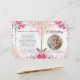 Personalize este programa funerário moderno e elegante com sua própria foto e texto para criar um tributo especial a seu amado. Um programa 'In Loving Memory' com um monte de rosas com elegante programa memorial em formas geométricas. No cobrir da frente está uma foto do seu amado, seu nome, datas, o local do memorial e a data do evento. Na dentro está um obituário e uma ordem de serviço, e na parte de trás está uma nota de agradecimento e o local da Nossa loja também oferece outros designs que estão oferecendo verde botânico com rosas e folhas de sotaque design e brilho/ouro e folhagem Eucalipto para atender a todas as demandas.