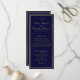 Crie seu programa de cerimônia para o casamento do tema azul marinho com este elegante modelo moderno. Personalize com seus nomes e outras informações relevantes para criar papelaria de recepções exclusivas. O design tem um fundo de mármore escuro, uma estrutura de dobra falsa e um texto de cor amarelo ouro.