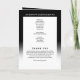 Este elegante programa de funeral dobrado em memória apresenta um design atemporal com gradiente preto e branco, criando uma homenagem sofisticada e sincera. A capa frontal exibe um retrato centralizado emoldurado por tipografia clássica serifada, homenageando o nome da pessoa querida e as datas de vida com dignidade. As páginas internas apresentam uma ordem estruturada de serviço, incluindo palavras de boas-vindas, leituras e um espaço para um obituário personalizado, ou qualquer texto de sua escolha. A contracapa apresenta reconhecimentos e uma mensagem de agradecimento, ou qualquer texto que você escolher. O layout refinado garante um souvenir significativo, tornando este programa uma maneira bonita de celebrar uma vida querida e proporcionar conforto aos presentes.