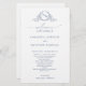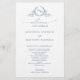 Programa Elegante de Casamento branco e azul empoeirado com um belo monograma desenhado à mão com as iniciais do casal. Elementos modernos de caligrafia manuscritos. Capacidade de fazer alterações e ajustes de texto selecionando "Editar usando a ferramenta design". Frente com detalhes da cerimônia de casamento, volte com nomes de festa de casamento e obrigado que envie para seus convidados. Parte da nossa Coleção "Dusty Blue Watercolor, Botanical Monographic Wedding" com vários produtos de coordenação disponíveis.