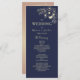 Programa de casamento moderno e sofisticado, com detalhes florais de marinho com azul rosa. Este design de dois lados inclui sua ordem de cerimônia e festa de casamento, fazer na moda e prático para seu dia especial.