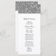 Este cartão permite descrever sua festa de casamento de um lado, e seu programa de cerimônia de casamento do outro. Personalize se você precisar adicionar linhas extras de texto. Apresentando uma imagem de brilho prateado (IMPRESSO—sem brilho real) contra um fundo branco.