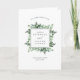 Projetados para coordenar com a nossa coleção de Estufa, estes elegantes programas de casamento dobrados apresentam um fundo branco nítido adornado com uma folhagem botânica de cor aquosa verde e pequenas flores brancas. Personalize a frente com seus nomes, local do casamento e data. Adicione seus detalhes da cerimônia e da festa noiva ao dentro e personalize as costas com uma mensagem personalizada de obrigados para seus convidados.