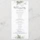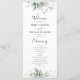 Programa Eucalyptus Dourado Floral Greenery Wedding. Este convite de casamento na moda e elegante apresenta uma linda aquarela pintada manualmente Eucalyptus Dourado Floral Greenery. Localize itens correspondentes na Coleção de Verduras Florais Douradas Eucalyptus com Aquarela.