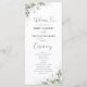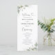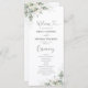 Programa Eucalyptus Dourado Floral Greenery Wedding. Este convite de casamento na moda e elegante apresenta uma linda aquarela pintada manualmente Eucalyptus Dourado Floral Greenery. Localize itens correspondentes na Coleção de Verduras Florais Douradas Eucalyptus com Aquarela.