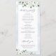 Moldura floral, branca, cor-de-água branca, verde-eucalipto e moldura de cor dourada em fundo azul empoeirado, com trendy script, elegante e na moda, programas de excelente para casamento rústico, casamento botânico e casamento de praia. Ver todas as peças correspondentes na coleção