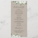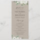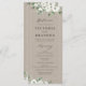 Moldura floral, branca, cor-de-água, branca, verde-eucalipto e moldura de cor dourada em fundo de papel kraft, com roteiro de tendências, elegante e na moda, programas de casamento de excelente para casamento rústico, casamento botânico e casamento de praia o ano inteiro. Ver todas as peças correspondentes na coleção