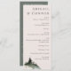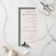 Elementos: cena de montanha de aquarela com fontes serif elegantes e contemporâneas. Cores: verde, verde-caçador, verde-terras altas, branco, névoa branca, cinza, ardósia. Temas: casamento moderno, ao ar livre, montanhas, rústicas, florestais, ao ar livre, florestas, florestas, natureza, caminhada, montanhas rochosas, serra nevadas, montanhas de serra azul, montanhas de cordilheira fumosa. Coleção: Evergreen Mountain Mist Rustic Casamento no inverno Collection. Tipo de produto: Programa