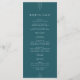 This simple art deco wedding program from the Everly Collection features a deep teal background, refined parisian typography, and delicate white line accents. It's modern, minimalist, and perfect for retro-inspired weddings.