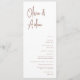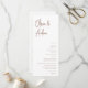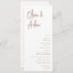 Projetado para combinar com nossos convites de casamento de Script Manuscrito Moderno. Uma bela design baseada na tipografia, com uma sensação minimalista, com uma escrita manuscrita de terracotta moderna e uma letra serif clássica. Personalize com os detalhes da sua cerimônia e personalize as costas com a sua festa de casamento.