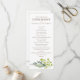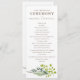 Elegante Wedding Program, cartão plano com título e texto editáveis. Moldura original desenhada à mão em verde de samambaias, folhas de pimenta e eucalipto de prata. (personalize a cor do plano de fundo a qualquer sua escolha); ilustração original de Becky Nimoy.