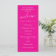 Um programa de festa de aniversário magenta com fontes elegantes e um delicado roteiro de caligrafia escrevendo boas-vindas no topo do programa. Adicione seu programa, a data e o nome da pessoa que comemora seu aniversário.