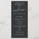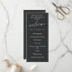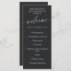 Um programa de festa de aniversário preta mate com fontes elegantes e um roteiro delicado de caligrafia escrevendo bem-vindo no topo do programa. Adicione seu programa, a data e o nome da pessoa que comemora seu aniversário. Limpo, simples, eterno e elegante.