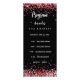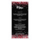 Programa de festa de aniversário e cartão de menu. Personalize e adicione um nome, idade, data e menu. Um fundo negro. Decorado com confete vermelho, texto branco.