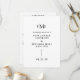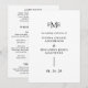 Programa de casamento contemporâneo e moderno com um design simples e minimalista com o monograma das suas três iniciais, juntamente com seus nomes e data de casamento em tipografia ousada. Este design tipográfico minimalista em preto e branco pode ser personalizado para qualquer cor que você escolher na ferramenta de edição de design.