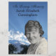 Um programa para um serviço memorial apresenta raios solares, nuvens e céu azul como o fundo. Uma foto do ente querido falecido que tem o fundo removido é apresentada no canto inferior direito. "In Loving Memory" e o nome do falecido está escrito na frente. Na parte de trás está a Ordem dos Serviços e Porta-Palavras. A citação, "Quando alguém que você ama se torna uma memória, a memória se torna um tesouro," é exibida na parte inferior do verso. Todos os textos e fotos são configurados como modelos para serem personalizados.