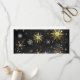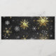 Fundo de Natal preto com flocos de neve de joias douradas e pretas. Flocos de neve ouro. Natal.