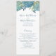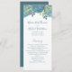 programa tradicional de cerimônia de núpcias com caligrafia elegante. este design apresenta o programa elegante de cerimônia floral, flores azul-aquarela, típica tipografia de escrita caligráfica simples, outono primavera, outono, igreja de inverno, ordem de serviço tradicional, botânica minimalista, folhagem verde-turquesa teal, k094 botânico romântico clássico; hydrangeas azuis, trabalho de arte desenhadas por laura Lacina.