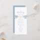 Programa elegante, botânico, floral, moderno, boho, azul empoeirado de dois lados, com coração de corda de ouro, flores silvestres periwinkle e simples roteiro caligráfico.