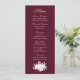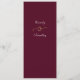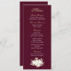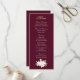 Este cardápio burgundo com guião de ouro e branco é simplesmente elegante. Um buquê floral agarra o fundo do menu. Os nomes dos casais estão nas costas com uma marca dourada. Perfeito para qualquer ocasião... todos os campos podem ser personalizados para seu almoço ou janto. Nomes opcionais no verso para casamentos e aniversários