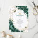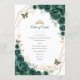 Emerald green gold and white Quinceanera celebration program. Slim double sided order of events card. Features, script font, gold butterflies, watercolor roses and tiara. Perfect for an elegant princess style glam celebration. Personalize with your own details. Printed Zazzle invitations or instant download digital printable template.