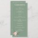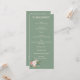 Um cartão de programa elegante e moderno com fundo verde salvia rico acentuado por rosas brancas & eucalipto com elementos florais rosa, rosa e pêssego.