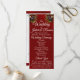 A frente mostra buquês de flor silvestre em lindas cores quentes de verão em um fundo vermelho com detalhes do programa de cerimônia de casamento e um obrigado especial para você. Os detalhes da festa de casamento estão sobre um fundo de madeira no verso. Estes programas são excelentes para o país ou para o casamento externo. Alterar as fontes pode criar uma aparência mais elegante ou rústica. Projetado para coordenar com a coleção Rustic Wildflower & Ribbon. Para alterar os detalhes, clique em "Personalizar". Para mover o texto ou alterar o tamanho, a fonte ou a cor do texto, clique em "Clique para personalizar mais"