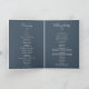 Este programa de casamento de folha azul dobrada é perfeito para um casamento de boho. A design apresenta uma simples silhueta verde em azul-cinza escuro com estilo minimalista clássico.