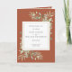 Com delicadas folhas verdes em aquarela sobre um fundo de terracota, este elegante programa de casamento dobrado botânico pode ser personalizado com as informações do seu dia especial. Projetado por Thisisnotme©