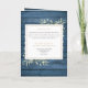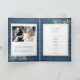 Um programa memorial funerário personalizado de ordem de serviço com folhagem sobre um fundo de painéis de madeira azul rústica. Criado por Thisisnotme©