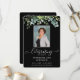 Personalize este programa simples e elegante com o nome, a foto e a mensagem do seu amado falecido. Honra e comemore a vida de seu amado com este modelo floral moderno, na moda, eucalipto em um clássico fundo negro. Fácil de personalizar texto e texto. As nossas sentidas condolências e orações estão convosco durante este período muito difícil.