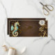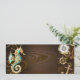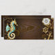Fundo de madeira castanho com fundo marinho, cordilheira mecânica, volante antigo, âncora de ouro e diversas engrenagens de ouro e latão. Estilo Steampunk.