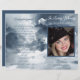 Este design apresenta nuvens de aquarelas do marinho com uma moldura para uma foto na frente e cor de coordenação na parte traseira com espaço para os detalhes de serviço e Obituário. ( Isto é destinado a ser dobrado em metade )
