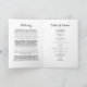 Celebração do programa de vida apresentando no cobrir da frente uma foto do seu ente querido, seu nome, datas, local memorial, data do evento e uma foto do oceano. Na dentro é um obituário, e a ordem de serviço; e atrás, uma nota de agradecimento e o segundo lugar para depois do funeral.