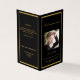 Um elegante programa de 4 páginas. Um fundo preto, uma falso estrutura dourada e espaço para a sua foto. Personalize e adicione nome, datas e texto.