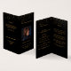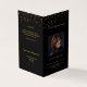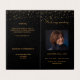 Um elegante programa de 4 páginas. Um fundo preto, brilhos de ouro e espaço para sua foto. Personalize e adicione nome, datas e texto.