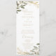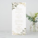 Este programa de casamento outono de ouro geométrico é perfeito para um casamento moderno. A design apresenta uma bela estrutura geométrica dourada com folhas verdes elegantes.