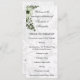 Este encantador programa de casamento da Ordem da Cerimônia apresenta um tema encantador de feitiço misturado com um clássico, inspirado na vintagem. Apresenta uma bela coroa verde de morango com flores no canto para um delicioso toque rústico, com uma bela cor damasco no fundo em tons suaves de cinza e branco. Há mais espaço no verso para mais detalhes, pois ele apresenta apenas a cor damasco sem a coroa.