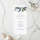 Este programa de casamento moderno e elegante apresenta uma forma geométrica em dourado rosa falso, rodeada por belos ramos de verde.