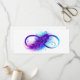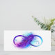 Símbolo infinito com uma bela pena pintada em cores roxas e azuis brilhantes sobre fundo branco.