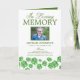 Programa funerário irlandês com um fundo branco tradicional, capas de aquarela verdes, uma foto do seu ente querido perdido, os detalhes do funeral, um obituário, ordem de serviço, e uma nota personalizada de agradecimento nas costas.