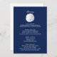 Cartão de informação de convite de casamento na praia azul com dólar de areia e texto branco de um lado e cores opostas do outro. Itinerário de um lado e acomodações do outro lado ou altere para direções ou outras informações conforme necessário.