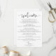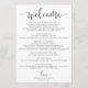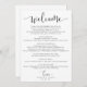 Seja bem-vindo ao seu convidado com esta bela carta - excelente para sacos de presentes de hotel para convidados fora da cidade! Edite facilmente a agenda diária, os nomes e a data! Esta design apresenta uma bela fonte preta clássica que é perfeita para qualquer casamento!